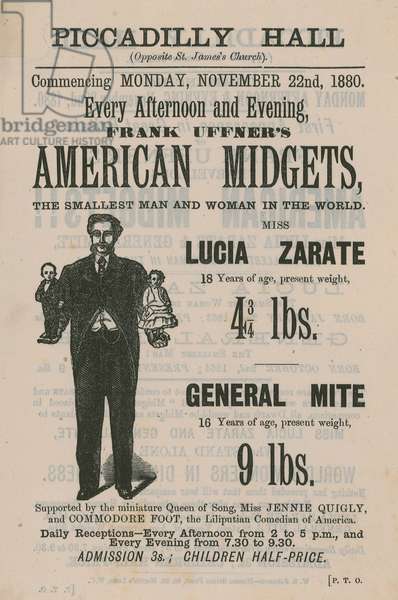 614331 Advertisement for Frank Uffner’s American Midgets (engraving) by English School, (19th century); Look and Learn / Peter Jackson Collection / Bridgeman Images