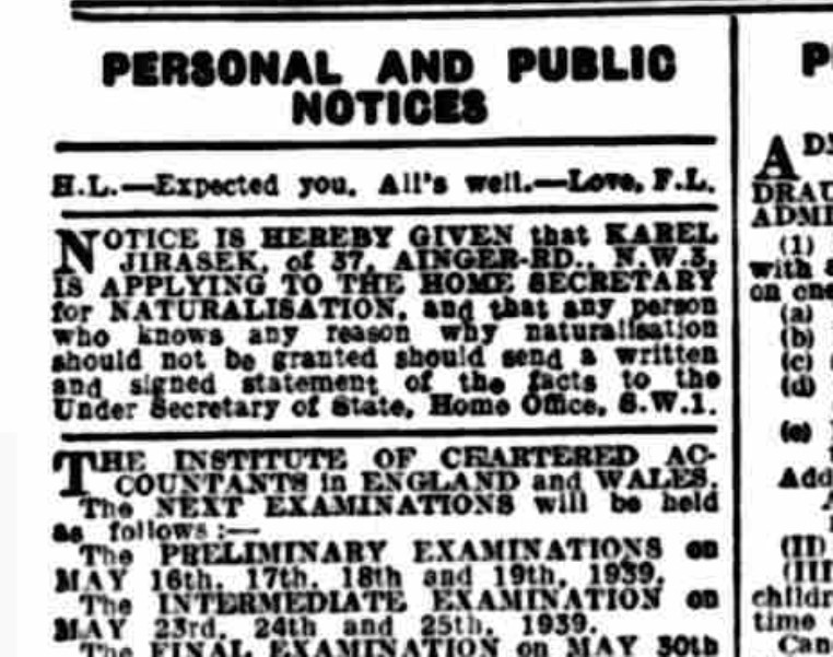 We know this because her address – 19 Woodlands Drive, Seabrook, Hythe, Kent (CT21 5TG) was given on her probate records when she died there on 9 February 1972.  But what I next uncovered explains my previous preoccupation with all things Czech.