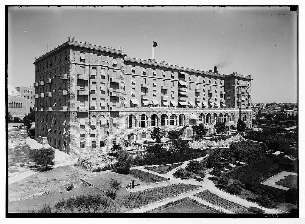 Photo: Garden view of the King David Hotel. Built in 1931, Jerusalem’s first luxury hotel, was marketed as the ‘Grand Hotel of Palestine’ and had six floors and boasted 200 rooms. [G. Eric and Edith Matson Photograph Collection. Library of Congress Prints and Photographs Division Washington, D.C. 20540 USA].